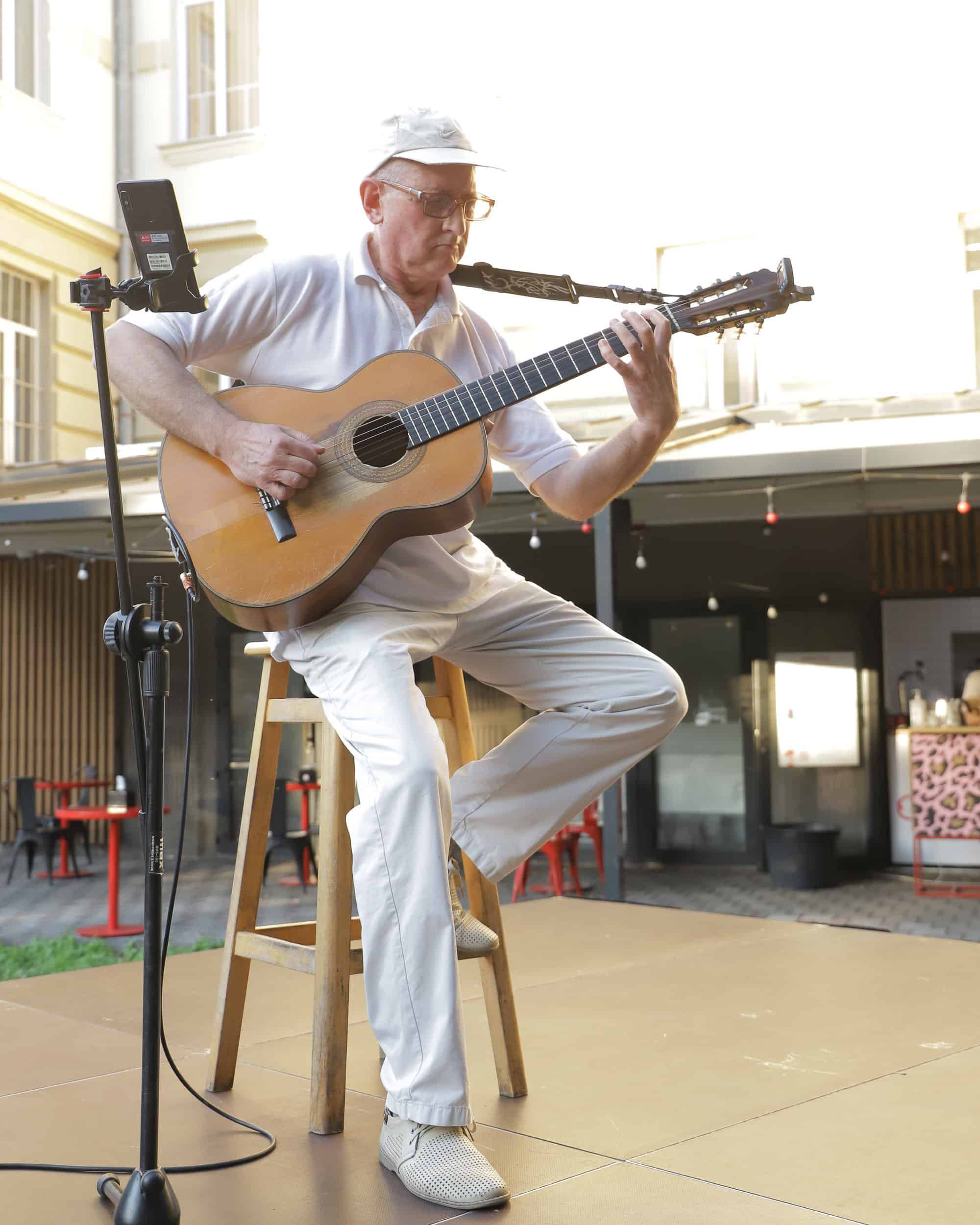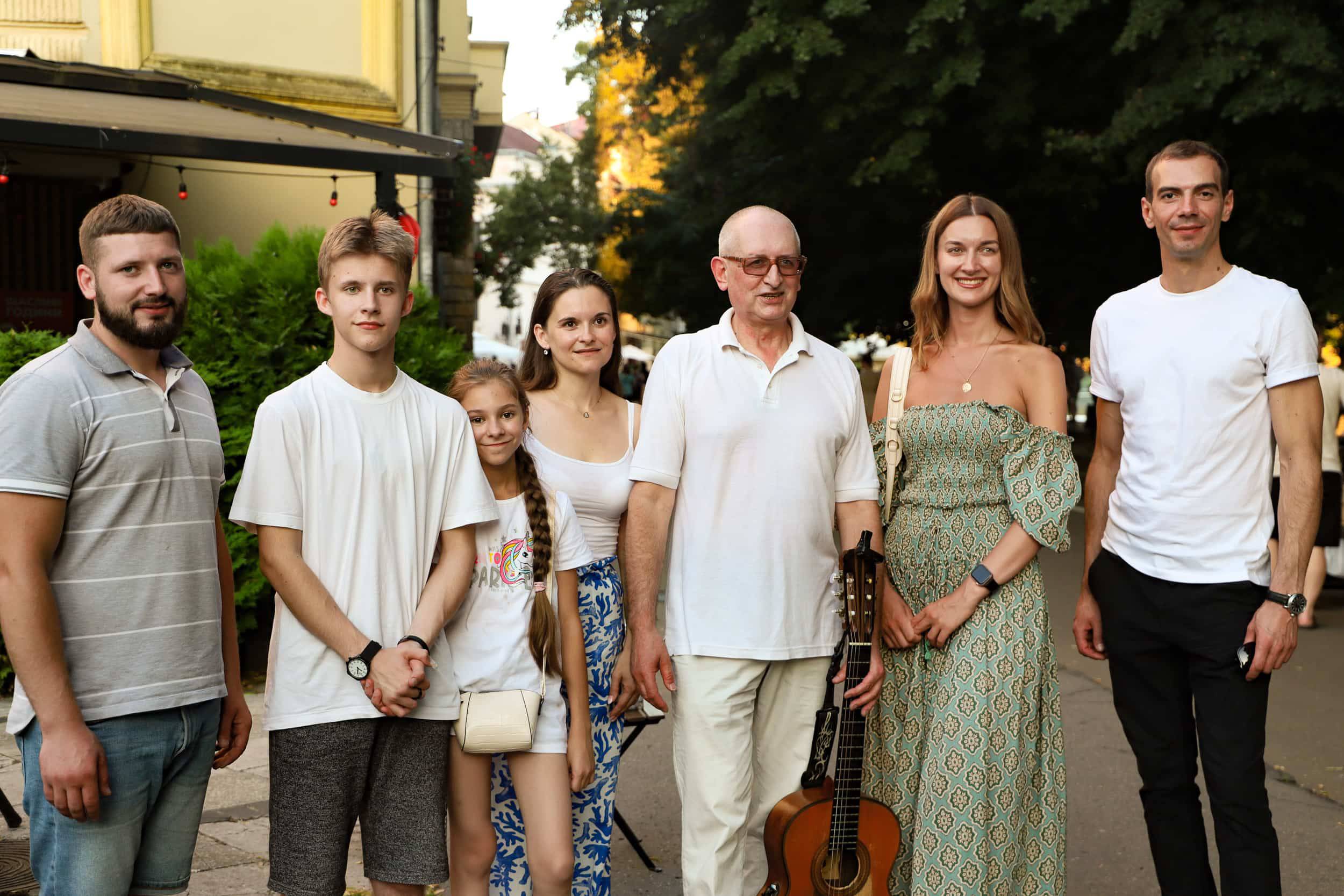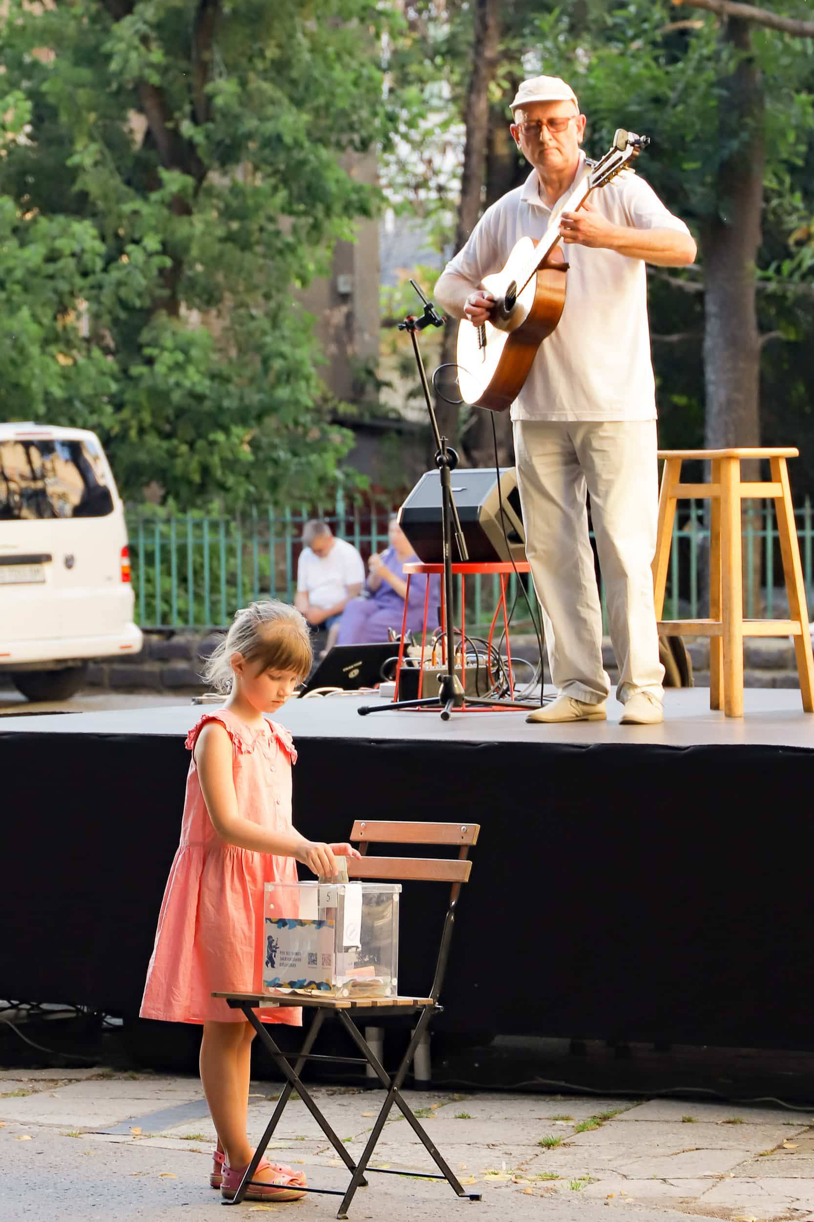 Легка романтична музика допомогла присутнім хоч ненадовго відволіктися від тривог сьогодення. А один із глядачів, який виявився студентом Ужгородського музичного фахового коледжу імені Дезидерія Задора, не втримався і попросив у гітариста дозволу також зіграти.
