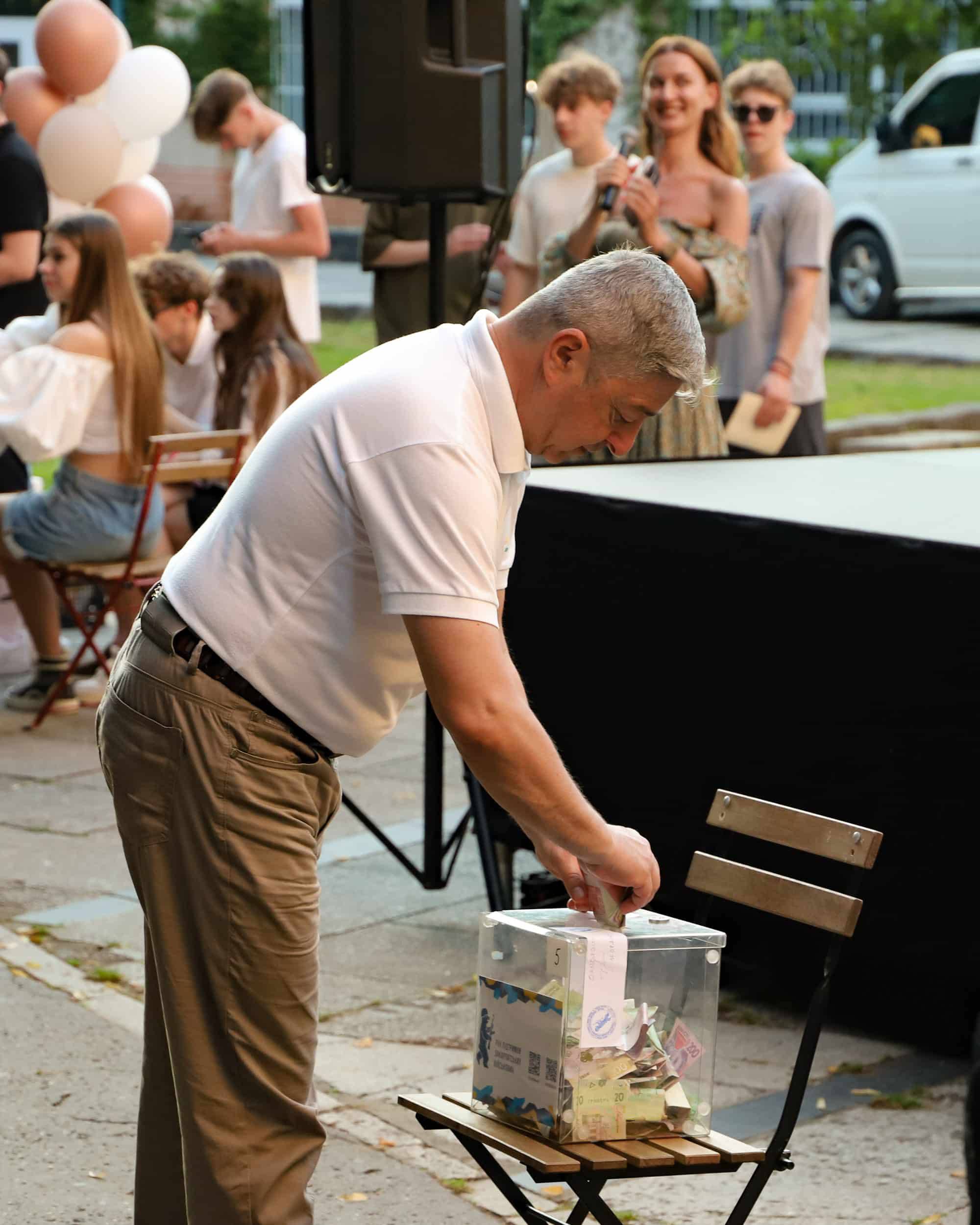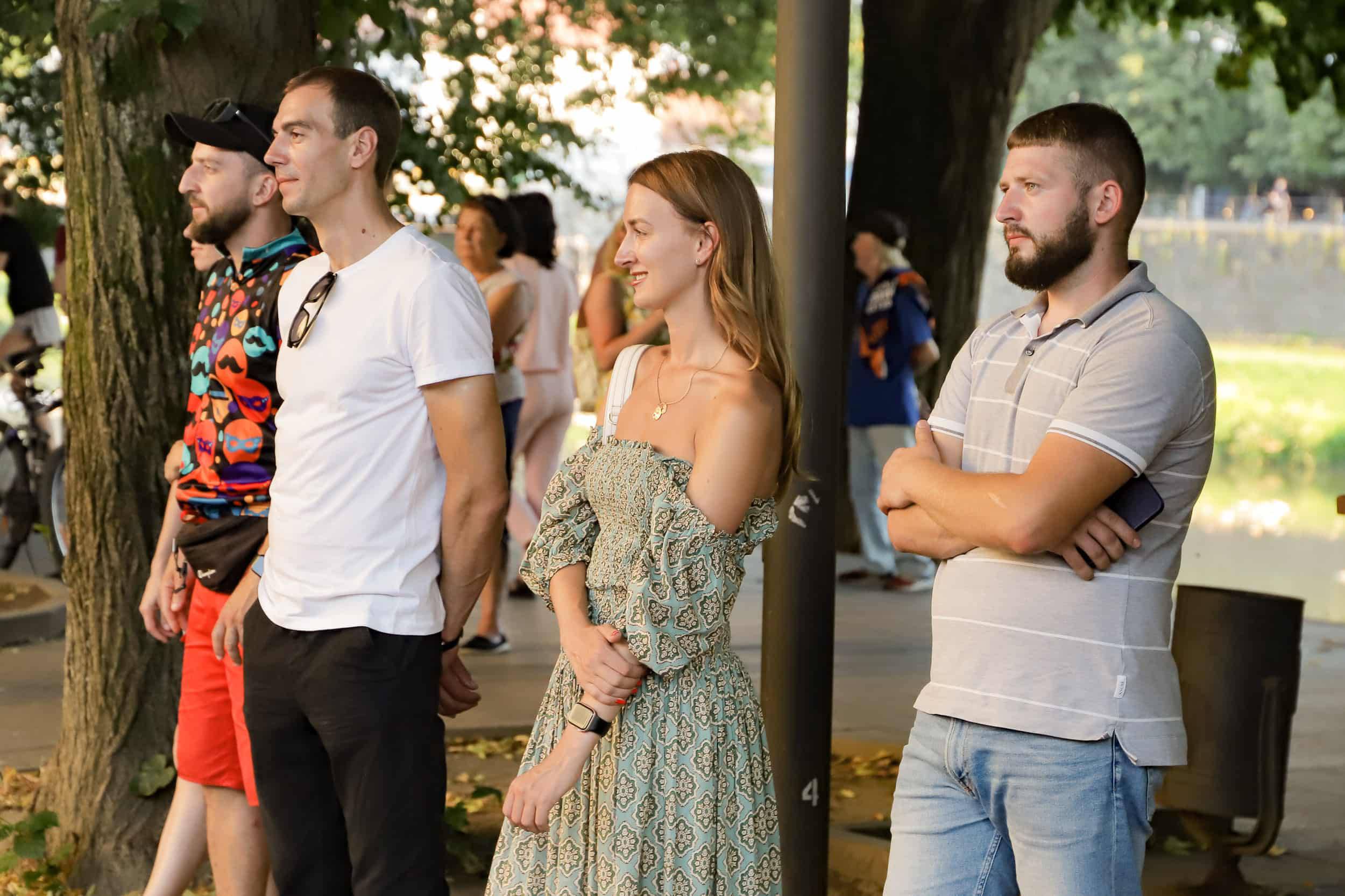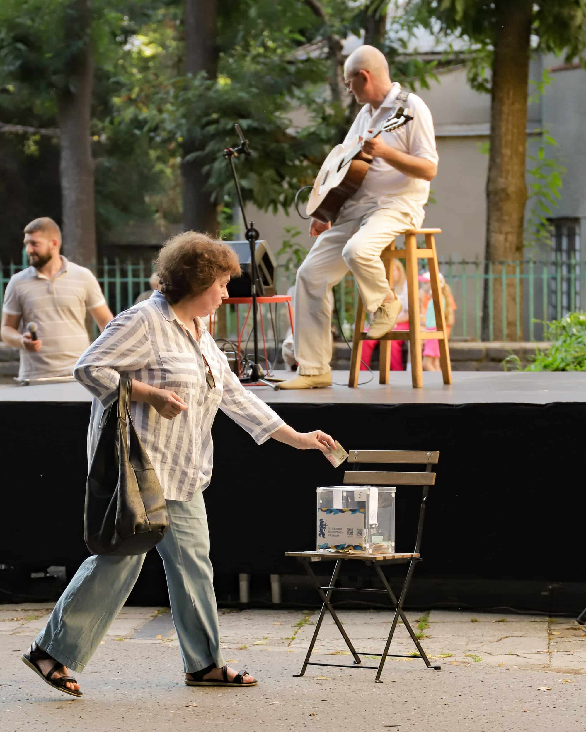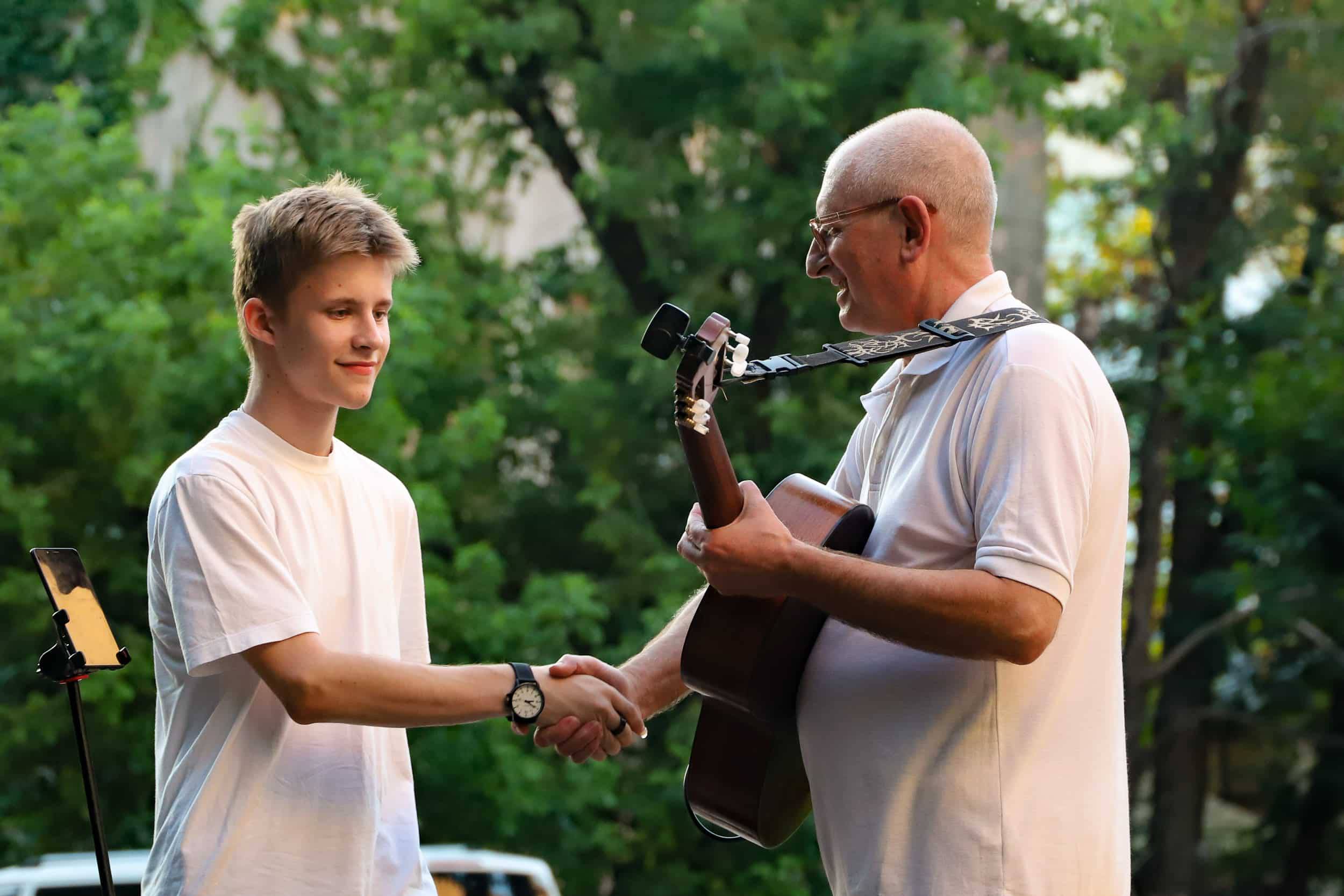 Легка романтична музика допомогла присутнім хоч ненадовго відволіктися від тривог сьогодення. А один із глядачів, який виявився студентом Ужгородського музичного фахового коледжу імені Дезидерія Задора, не втримався і попросив у гітариста дозволу також зіграти.