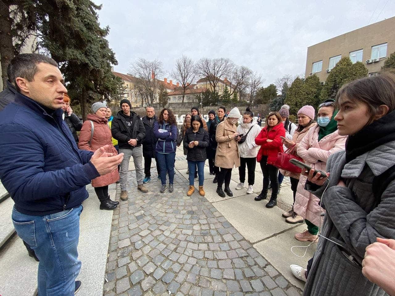 Щодо поточної ситуації. Потяги запізнюються, причини зрозумілі. Коли прибувають до Ужгорода, на станції оголошують, що є представник від міськради, є банер, черговий. Групами 5-10 людей привозять у Совине гніздо. Поки що великого напливу нема, адже багато людей не можуть виїхати, але буде ще більший потік. На в‘їзді до Закарпаття черги.