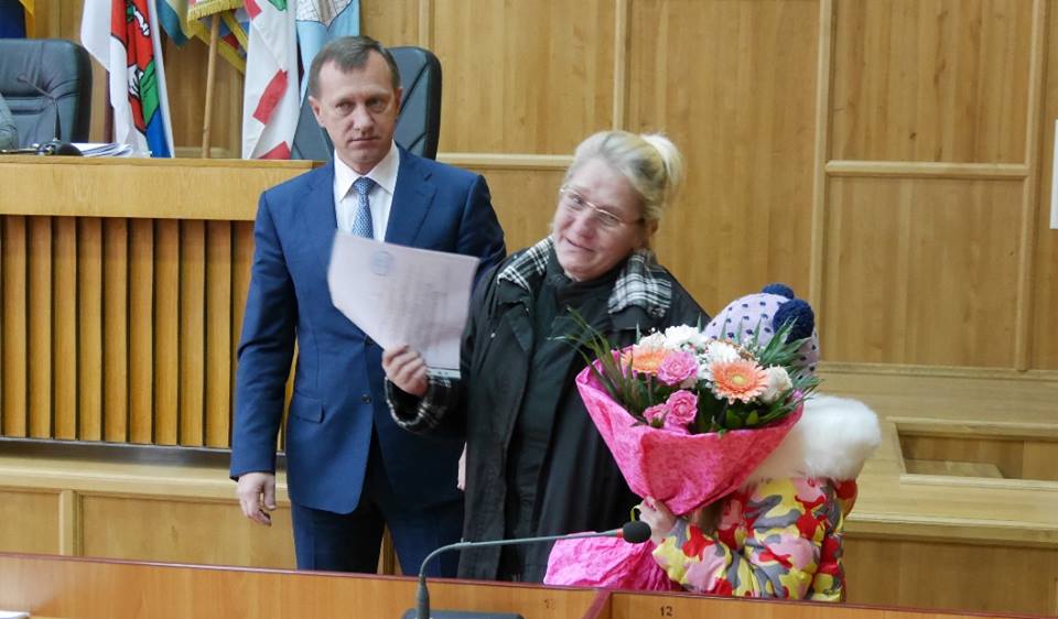 На самому початку міський голова Богдан Андріїв вручив договір дарування на нежитлові приміщення ужгородці Ілдико Кашай. Помешкання на першому поверсі будинку по вулиці Оноківській,16/1 передано безоплатно Ужгородською міською радою жінці-інваліду, яка виховує двох неповнолітніх дітей, одна дитина також з обмеженими можливостями. Ілдико Ласлівна дуже дякувала міському голові та депутатському корпусу за те, що через багато років нарешті отримала документ на житло.