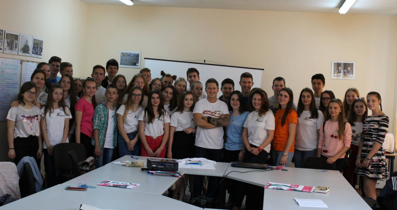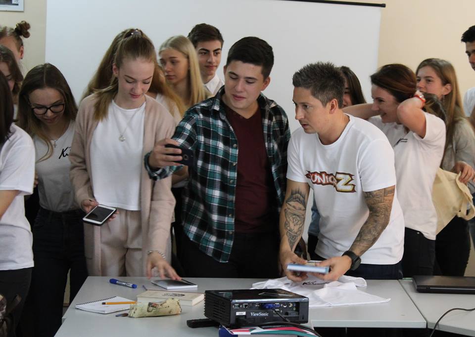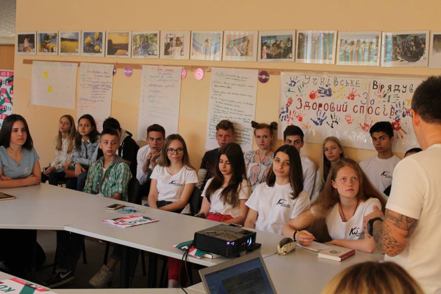 Олександр Педан розпочав зустріч з мотиваційного спічу про те, що дітям не потрібно прогинатися під блогерів, а самим створити якісний контент, популяризуючи здоровий спосіб життя. Тільки молодь може змінити світ.