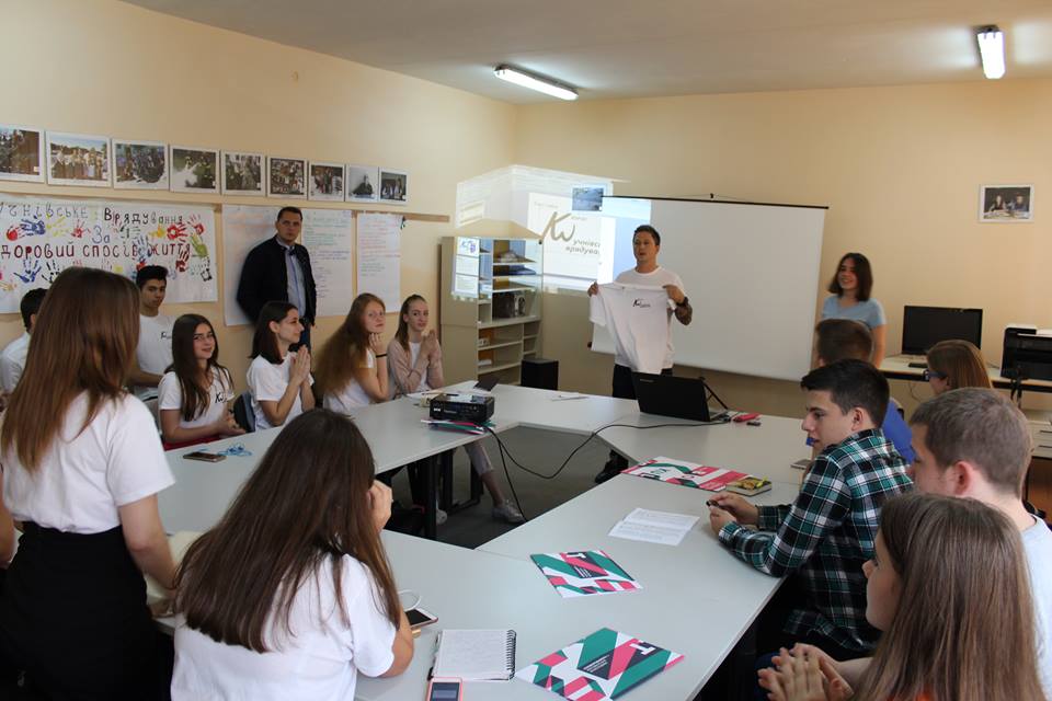 «Сьогодні я побував на зустрічі лідерів учнівського врядування міста «КОРЗО» з Олександром Педаном. Я дізнався для себе багато цікавого, зокрема те, що в моїй школі, на уроках фізкультури, можна мати більше 30 різноманітних видів спорту. Велике спасибі Олександру Педану за чудову лекцію!» – ділиться враженнями учень УЗОШ №8, волонтер комітету міжнародних відносин учнівського врядування міста «КОРЗО», Роман Дранчак.
