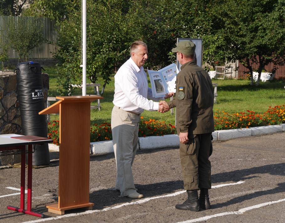 Від імені міського голови Ужгорода Богдана Андріїва передав вітання військовослужбовцям його заступник Ігор Фартушок. Він подякував бійцям за старанне виконання своїх обов’язків, побажав здоров’я їм та їхнім родинам. За сумлінне виконання завдань, високі показники у службово-бойовій діяльності, з нагоди річниці створення військової частини Ігор Фартушок вручив грамоти Ужгородської міської ради капітану, помічнику начальника штабу з організації служби охорони громадського порядку Андрію Максимлюку, молодшому сержанту, фельдшеру Тетяні Реківчак, старшому солдату Іліці Рігель, молодшому лейтенанту Олександру Федчуку, сержанту Аліні Яворській.