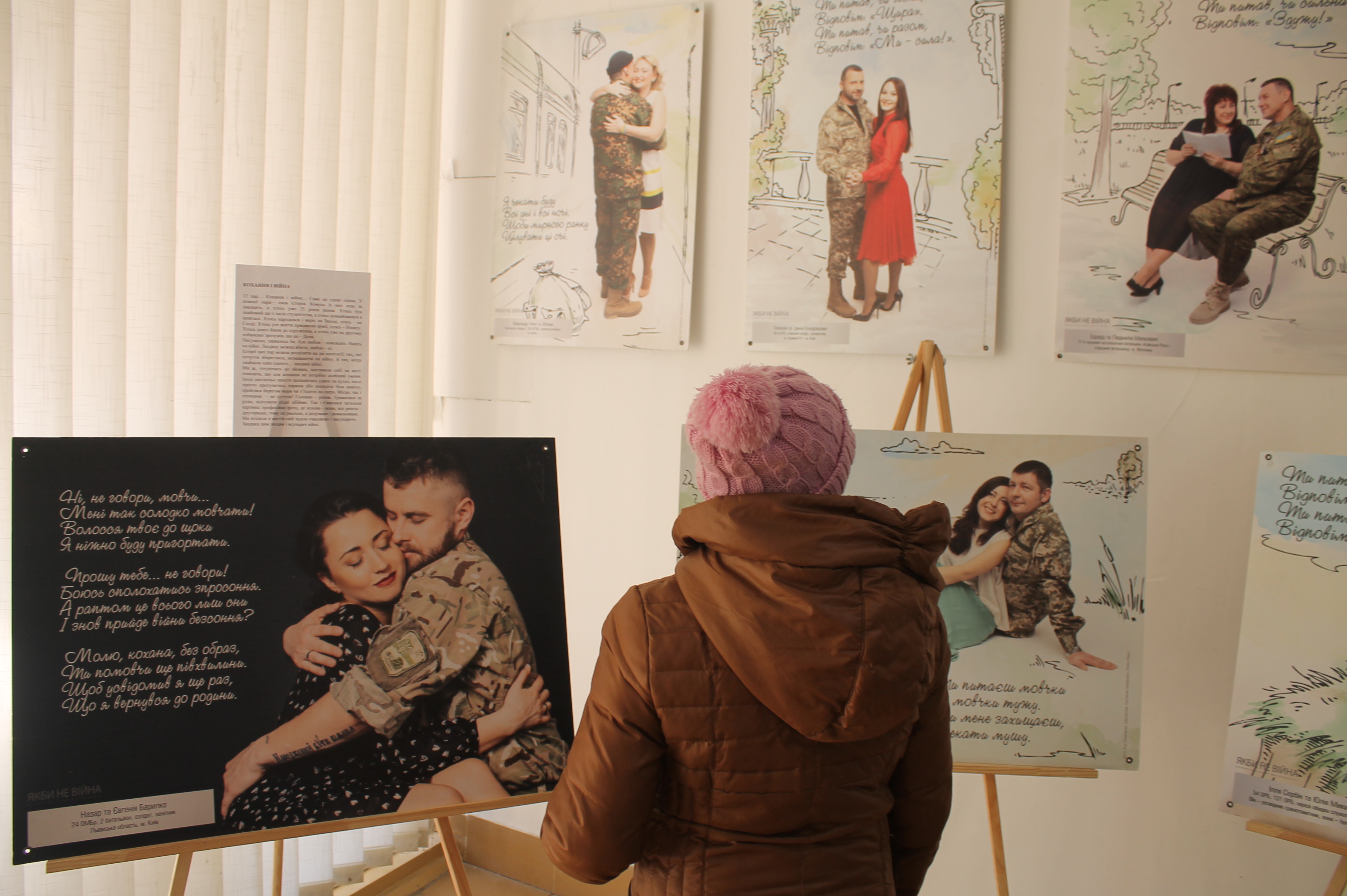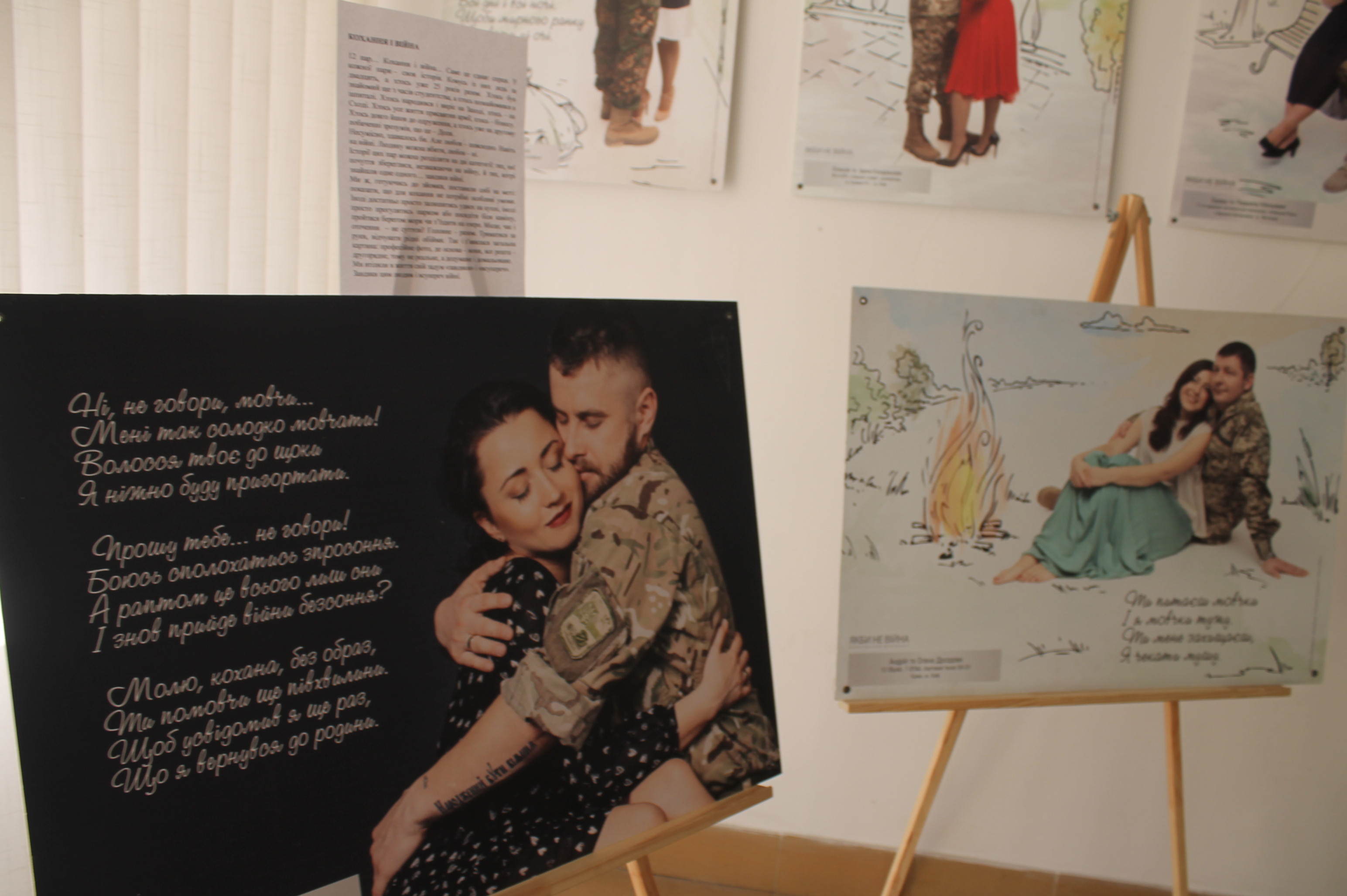 Усього експозиція налічує 122 портрети, розділених на 8 тематичних блоків. Перший був підготовлений минулого року до Дня закоханих, 14 лютого, та показує натхненну силу кохання, що допомагає вистояти крізь усі труднощі, з якими стикаються воїни та їхні половинки через війну.