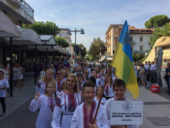 Учнів Ужгородської дитячої школи мистецтв – хору «Веселка» (керівник Н.Швайгер) та ансамблю народного танцю «Карічка» (керівники – заслужена артистка України Л.Вайзер та В.Синичка) надзвичайно тепло приймали на ХVІІ Міжнародному фестивалі танцю і пісні «LE SPIEGGE d’ITALIA 2018» в італійському Річчоне.