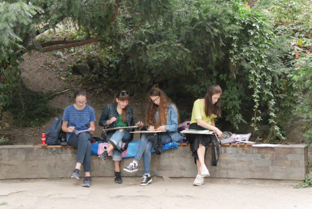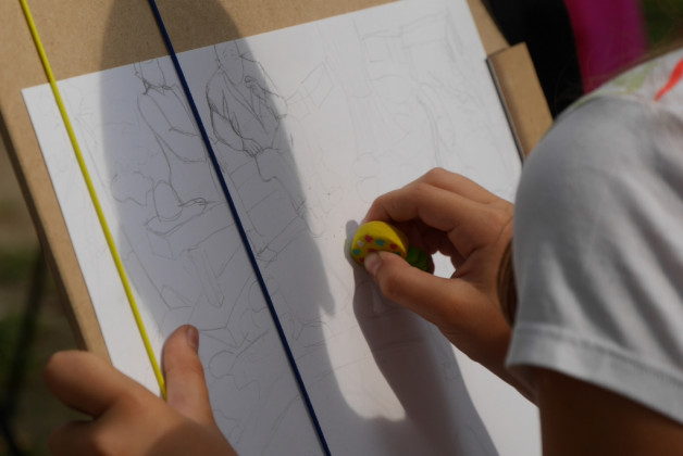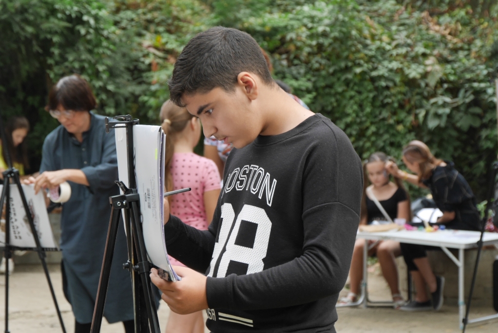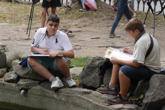 Діти творять на пленері з живопису на мольбертах по-різному: хтось змальовує загадкових Ерделі та Бокшая, хтось – краєвиди альпінарію та пейзажі поблизу.