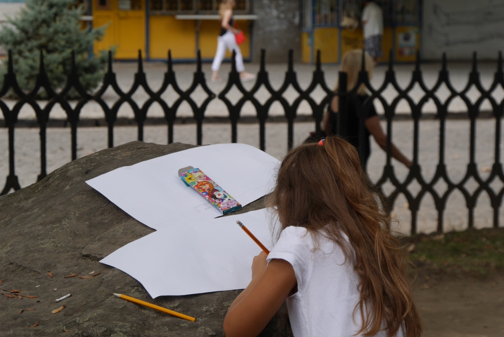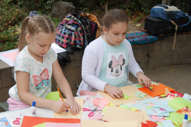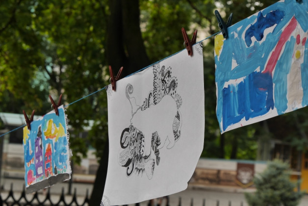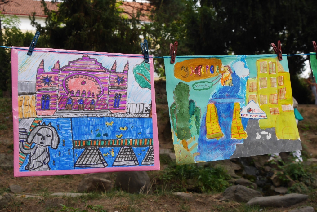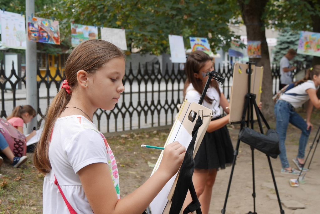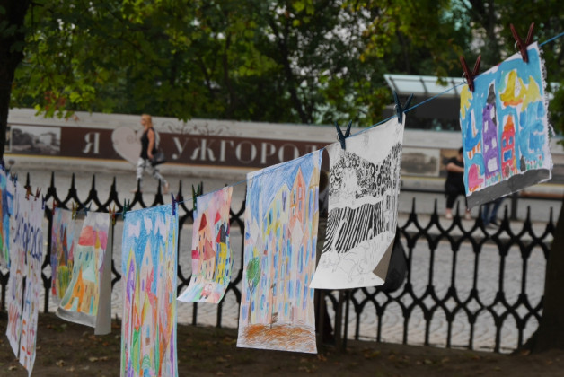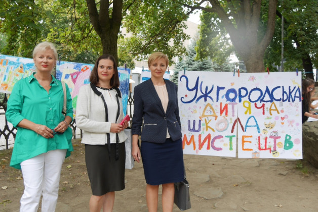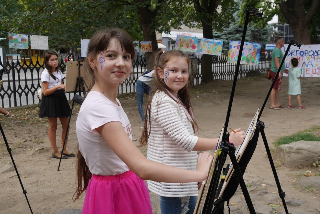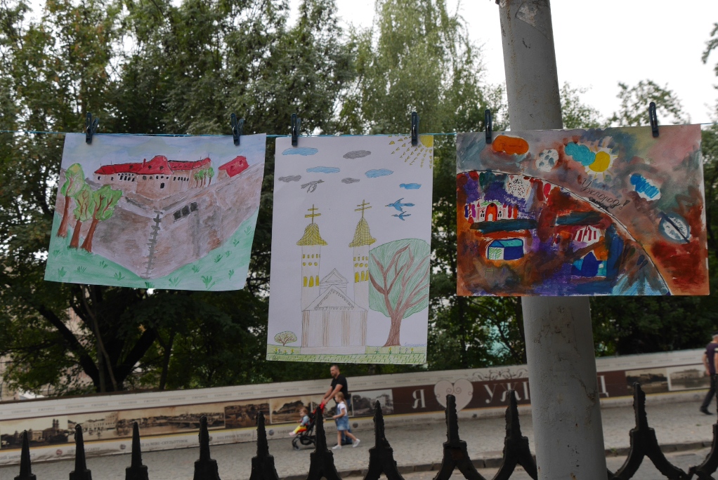 Також тут відбувається виставка з живопису «Ужгород очима дітей» – роботи учнів відділення образотворчого мистецтва школи. Крім того, на заході представили виготовлення витинанок, а ще всім охочим, зокрема юним художникам, пропонують зробити аквагрим.