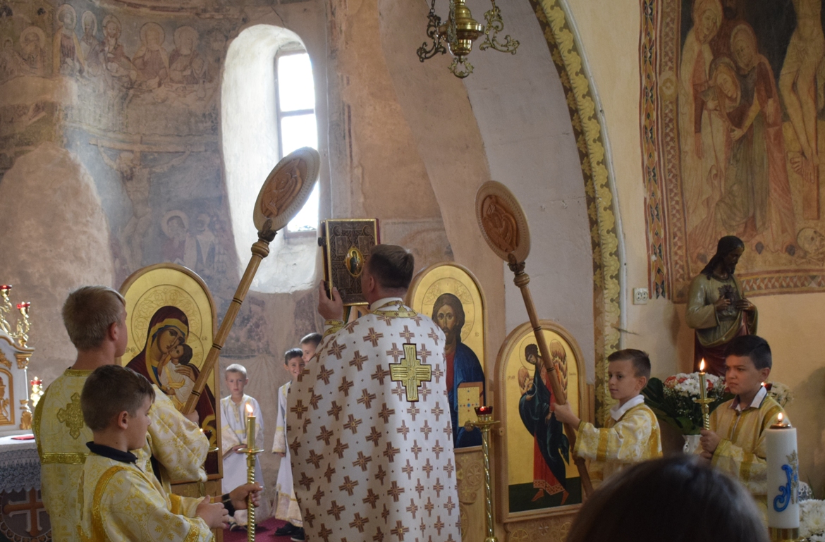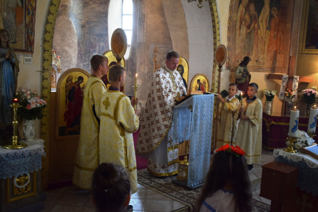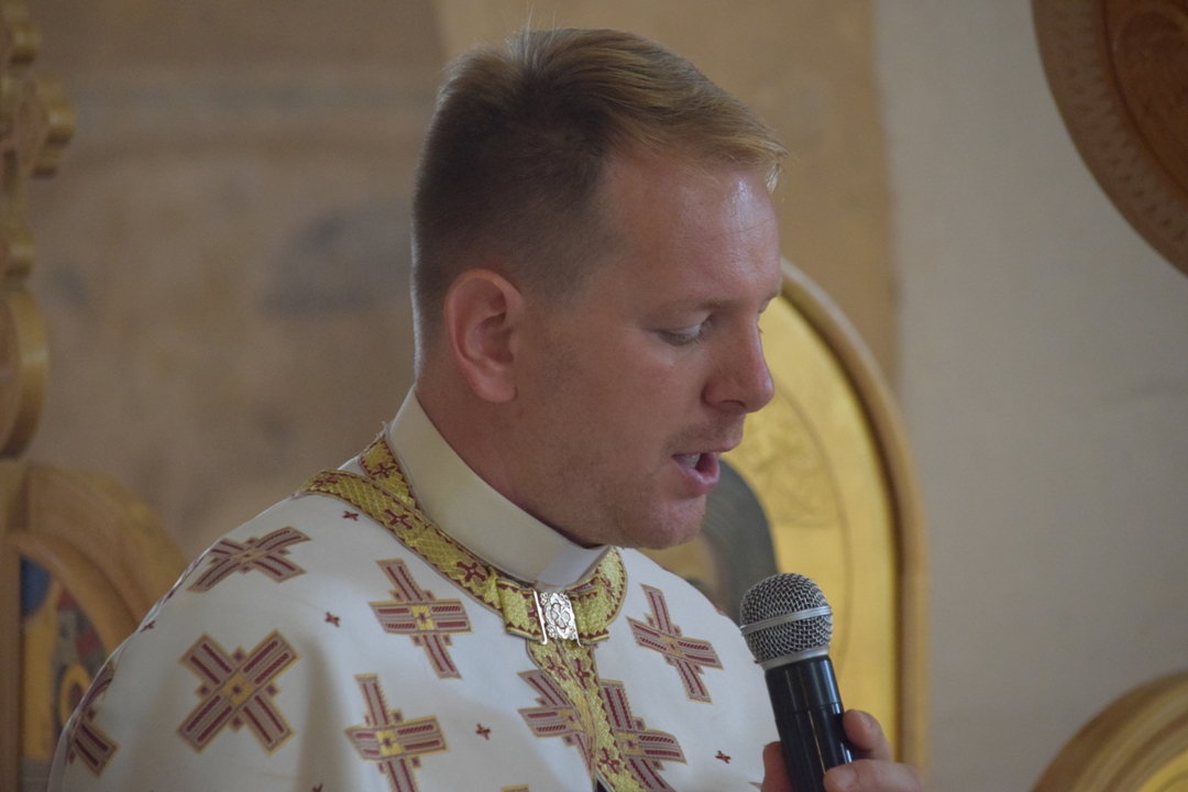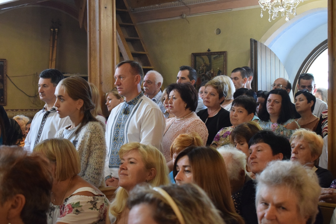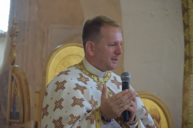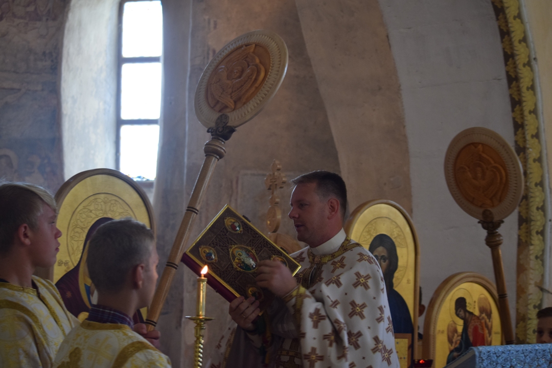 Літургію звершив настоятель храму, отець Богдан Савула, після закінчення Служби Божої він привітав ужгородців зі святом, побажав віри, радості, благодаті.