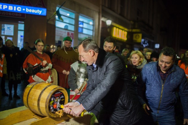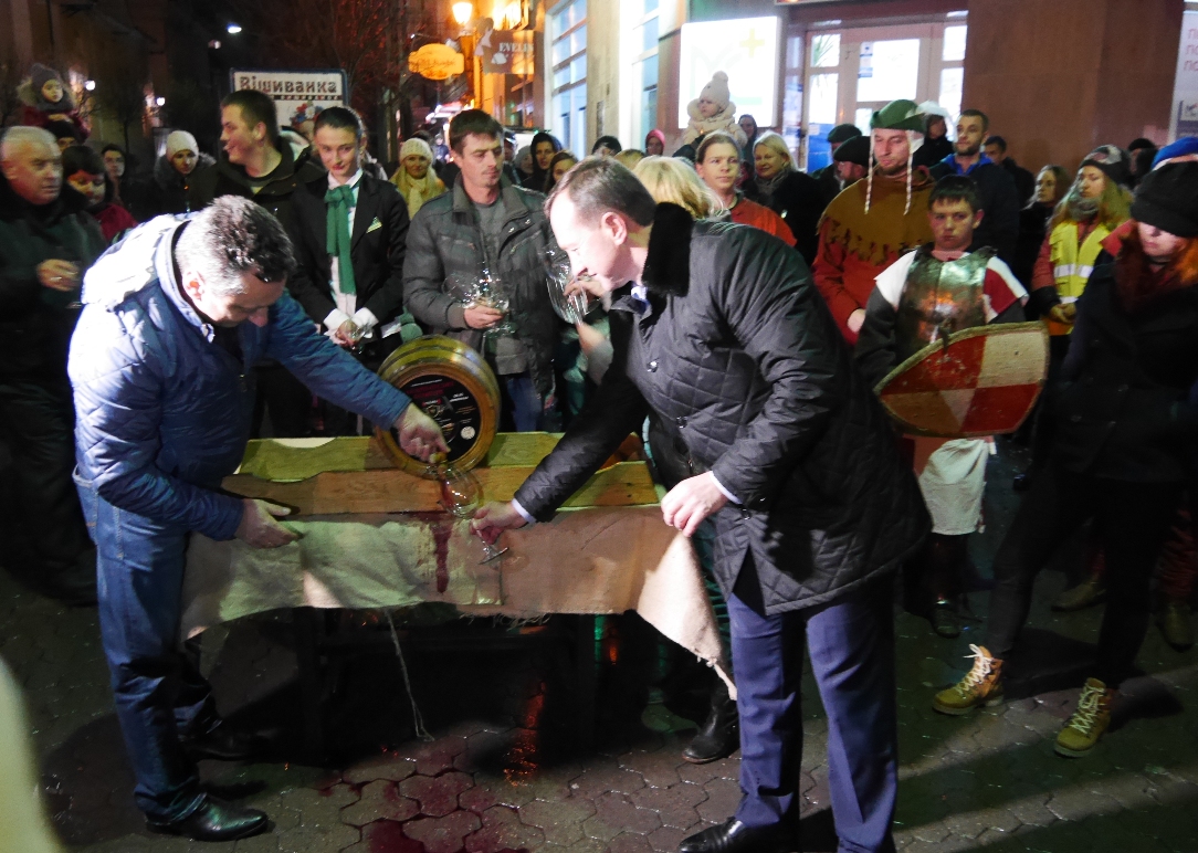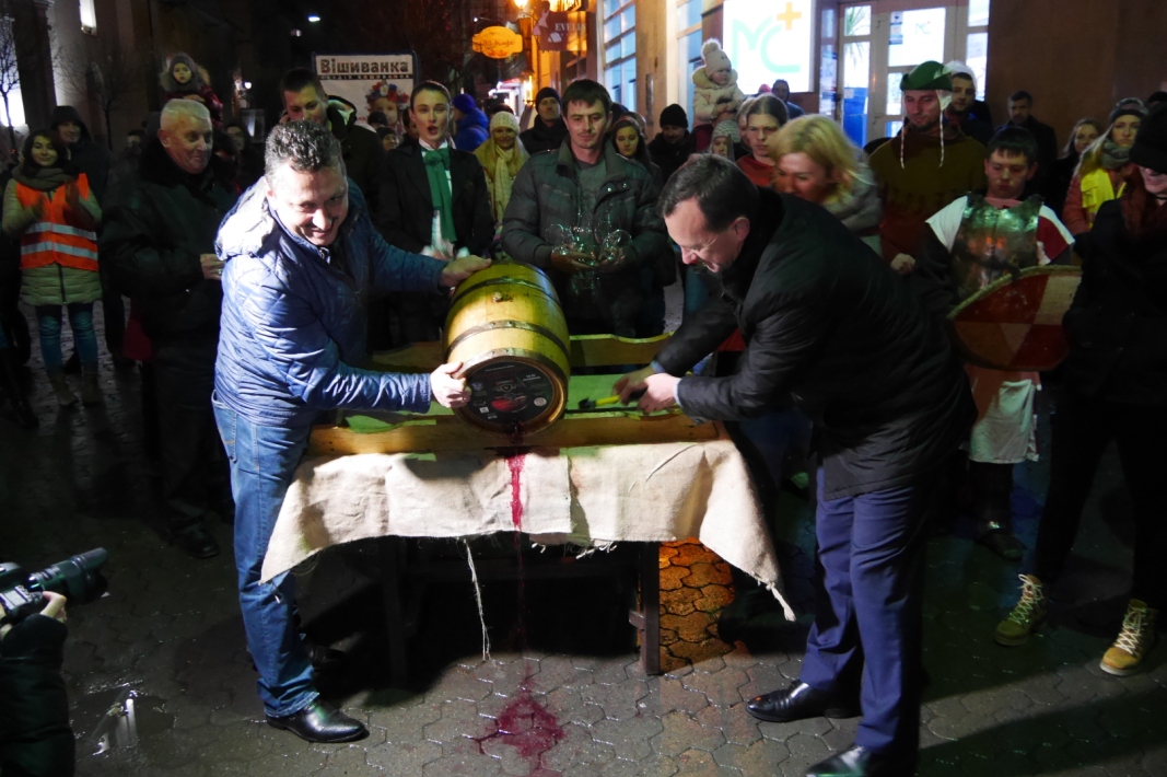 Символічну бочку вина цьогорічного врожаю відкоркував на розі вулиць Корзо і Волошина міський голова Богдан Андріїв, який привітав із початком фестивалю ужгородців та гостей міста.