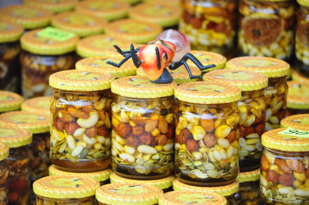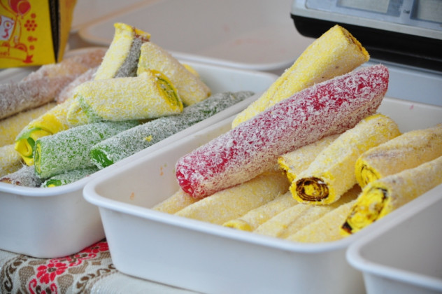 За межами винних підвалів “Совиного гнізда” розгорнулися кілька фудкортів. Тут ексклюзивні солодощі, продукти бджільництва, закарпатські сири, ковбаси і соуси представляють найкращі виробники краю. А у сквері напроти вже шашлично і духмяно – тут снідають шашликами, бограчем, смаженими ковбасами та перепілками.
