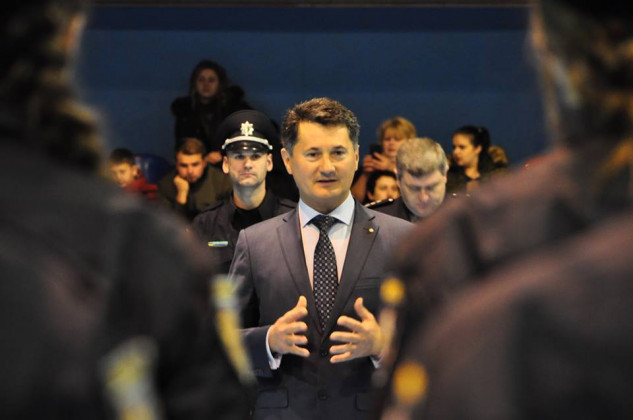 Заступник міського голови Ужгорода Ігор Фартушок привітав новобранців патрульної поліції з прийняттям присяги