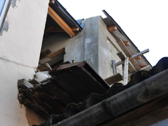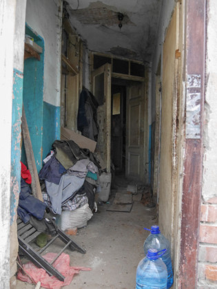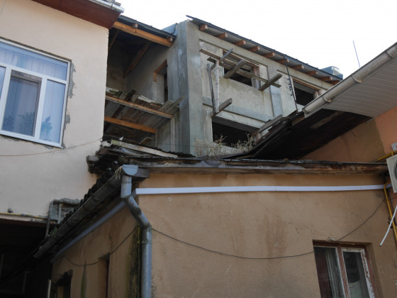 Квартира є приватною власністю у будівлі, яка, під кутом до інших і, за словами присутніх на місці сусідів, має понад сотню років. Візуально видно, наскільки стара і трухлява деревина перекриття, власник, вочевидь, дуже багато років нічого не робив щобвідремонтувати, зміцнити будівлю.