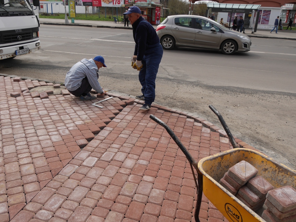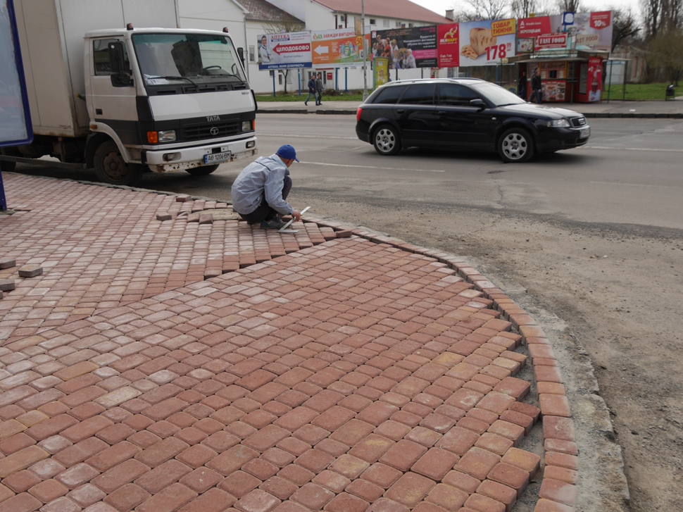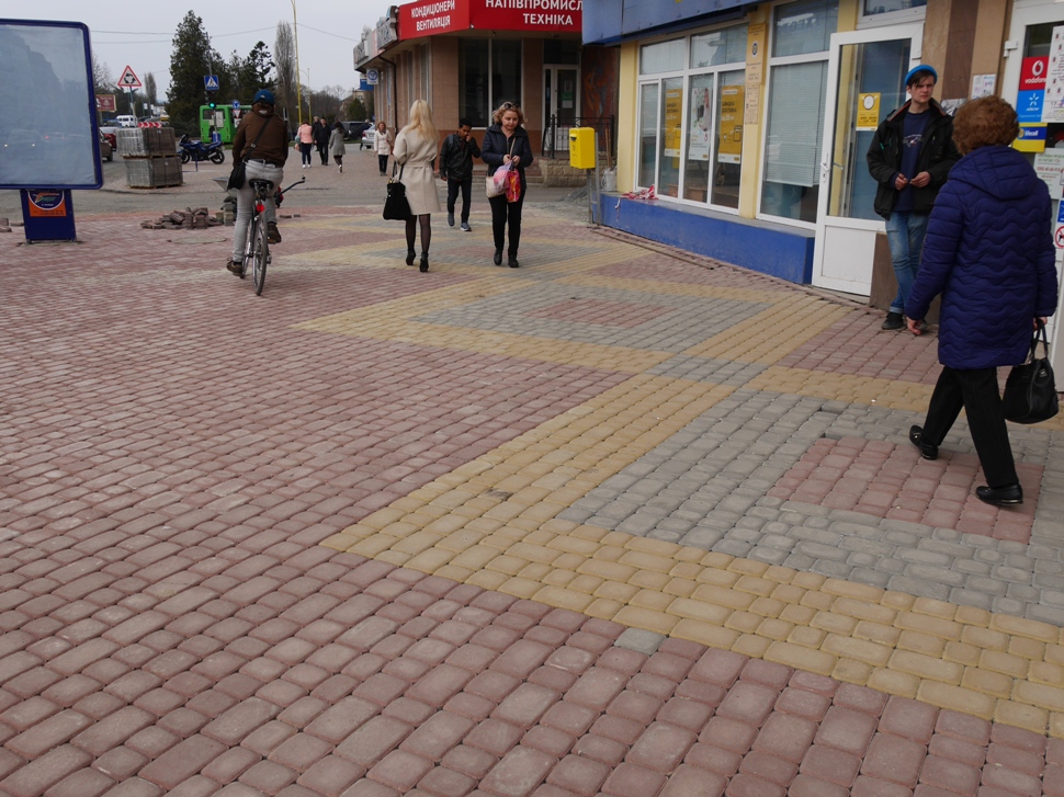 Тротуар працівники фірми-підрядника ТОВ «КБК» виклали кольоровою плиткою. Облаштували також покриття на встановленій тут «розумній» автобусній зупинці.